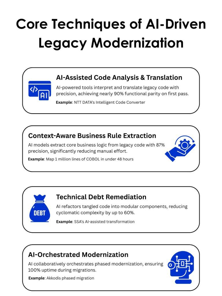 Here’s where AI-enhanced modernization shines. It introduces a gradual, intelligence-led strategy that leverages AI to interpret legacy code, enable smart transitions, and optimize performance over time, all while preserving system stability and business continuity. In this regard, Legacy System Modernization becomes a vital approach to safeguard institutional knowledge while evolving technology stacks.